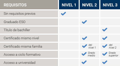 Haz click en las imágenes para más información sobre cada Certificado/Nivel
